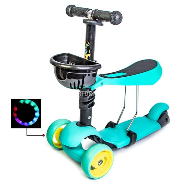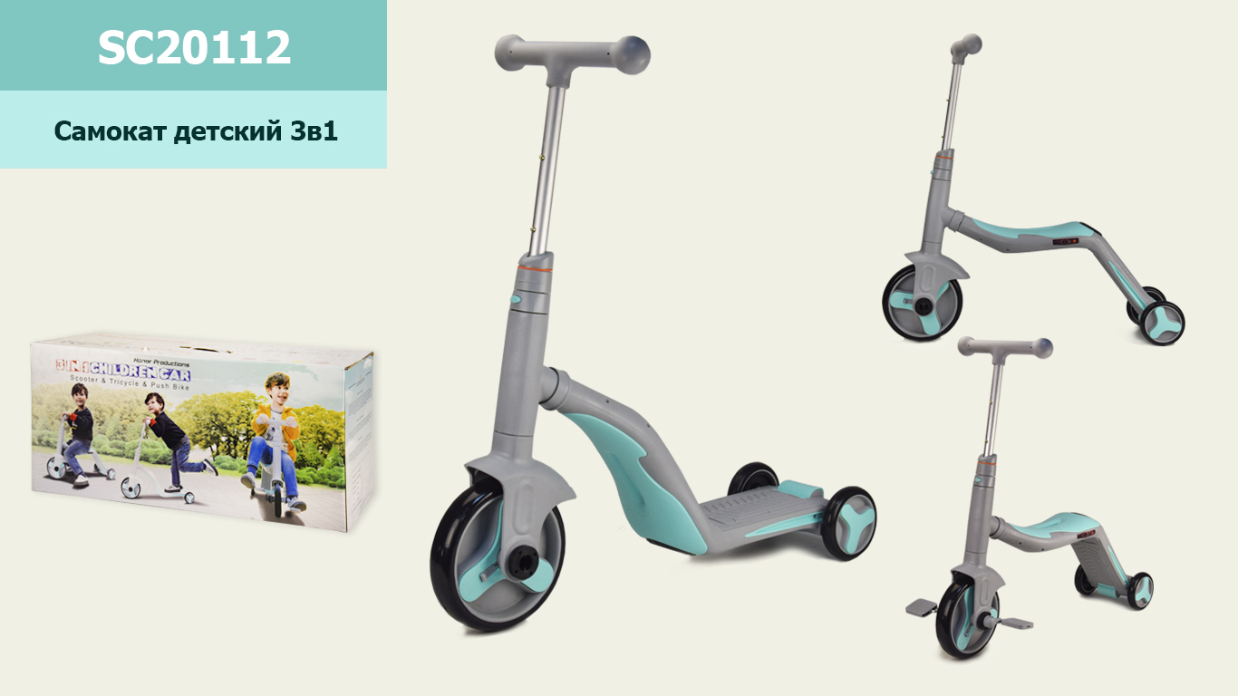 Самокат дитячий 3-х коліс. 3в1 SC20112 (4шт) сіро-блакитний, колеса PU 190мм*108мм. музика, світло, 2