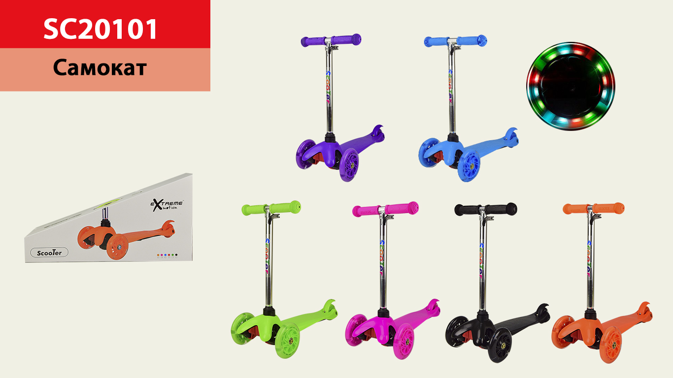 Самокат дитячий 3-х коліс. SC20101 (6 шт) mix 6 кольорів, світяться колеса, PU