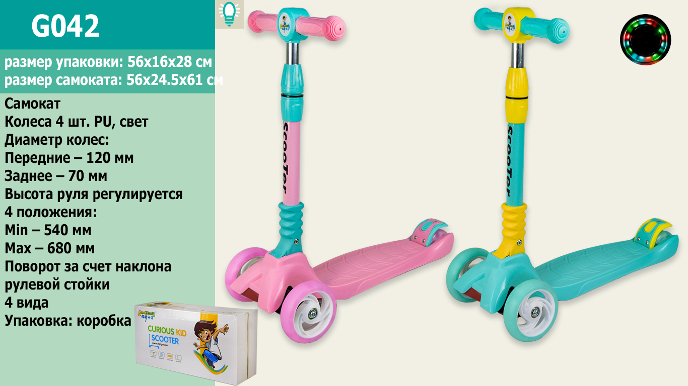 Самокат дитячий 4-х коліс. арт. SC22070 (6 шт) колеса зі світлом, PU, висота керма 64x78x83x мм