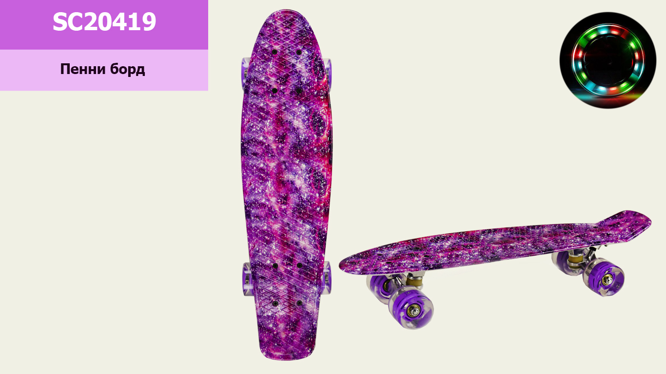 Пенні борд арт. SC25144 (8шт) 55*14, 5 см колеса PU свiтяться, 4 види, у плівці