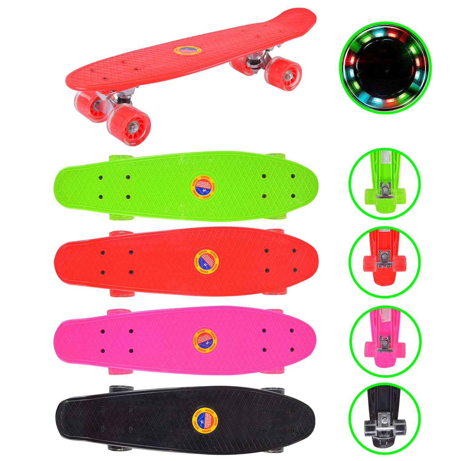 Пенні борд арт. SC25143 (8шт) 56*15 см колеса PU свiтяться, 5 кольорів