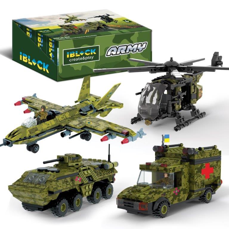 Конструктор IBLOCK арт. PL-921-427 (48шт/6) 6 диспл. по 8штАрмія, 154-237дет., 4вида, р-р уп-ки 23*4, 5*14см, р-р дисп.бокс. 47, 2*19, 5*14, 5см /ціна за шт/