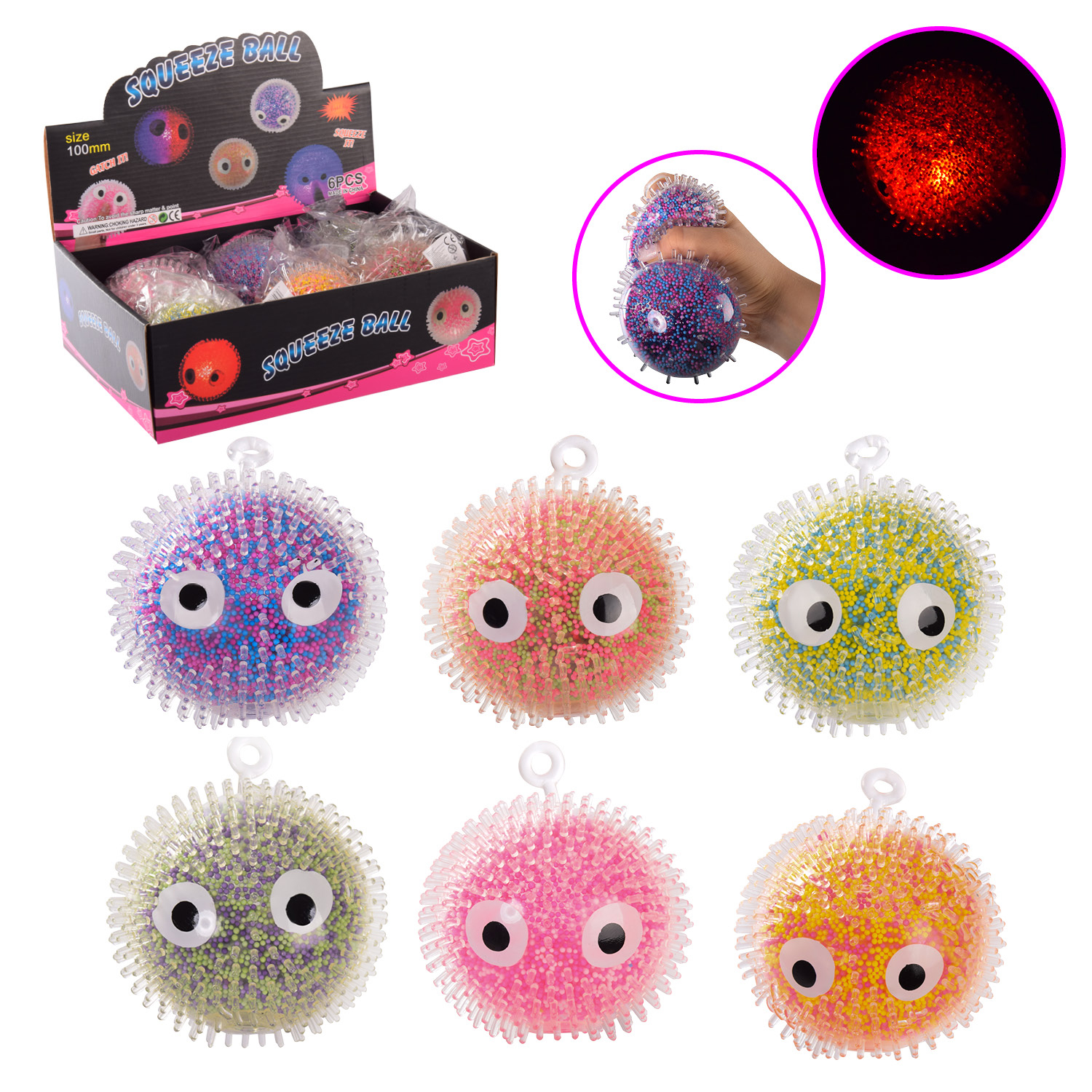 Антистрес арт. AN4347 (144шт) кулька зі світлом, 10 см 6 шт.дисплей бокс.30*21*10 см