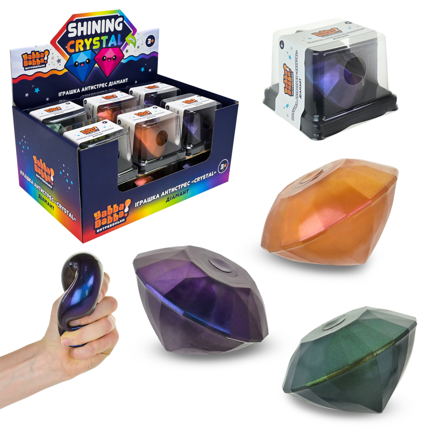 Антистрес YabbaDabba арт. YD2555 (72шт) 12 шт 3 кольори, р-р 5см, короб.6*6*6см, у дисплей боксі 26*19*16, 5см