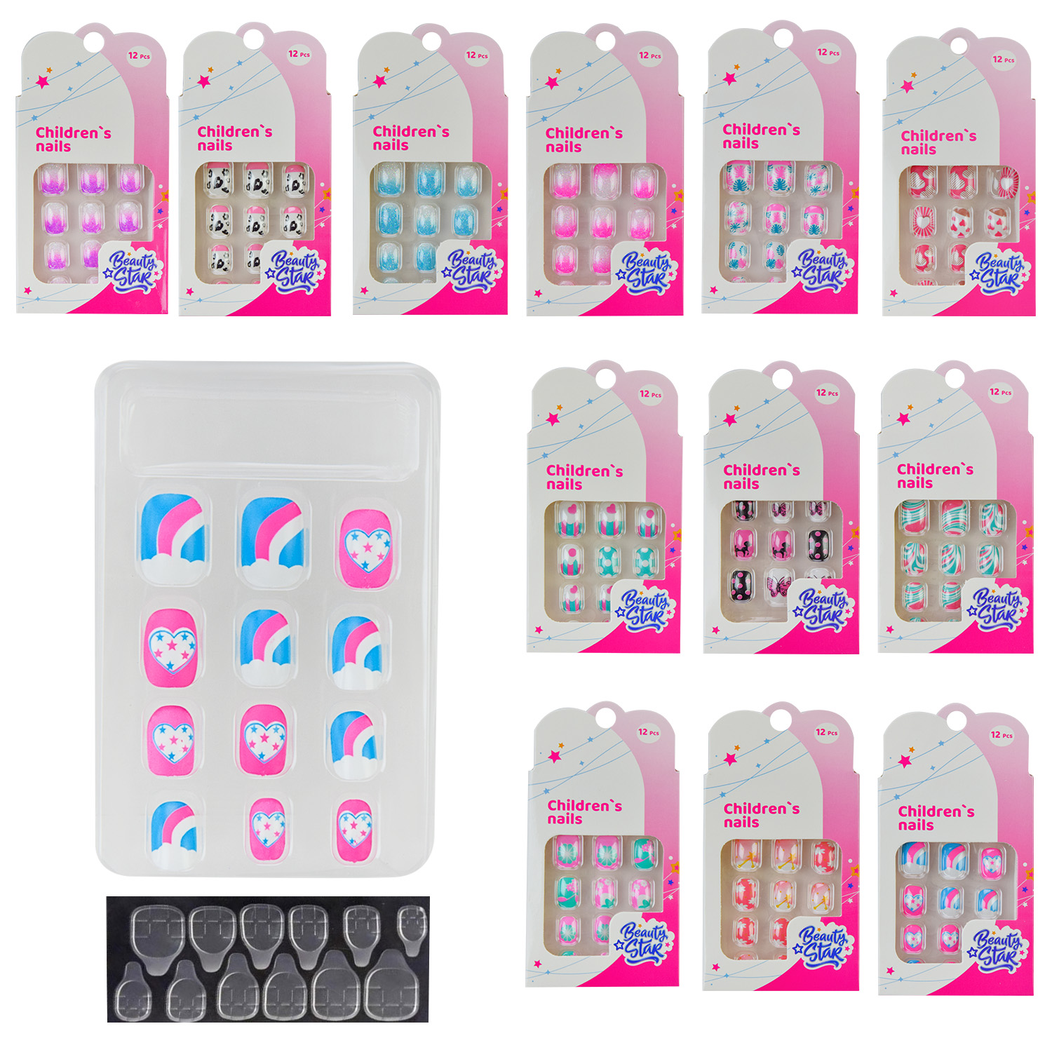Аксессуари для дівчаток Beauty star арт. PL523-001 (480шт) 40 уп 12 шт нігті накладні, на самоклейкій основі, мікс 12 видів, ціна за 1 шт короб. 7*11см