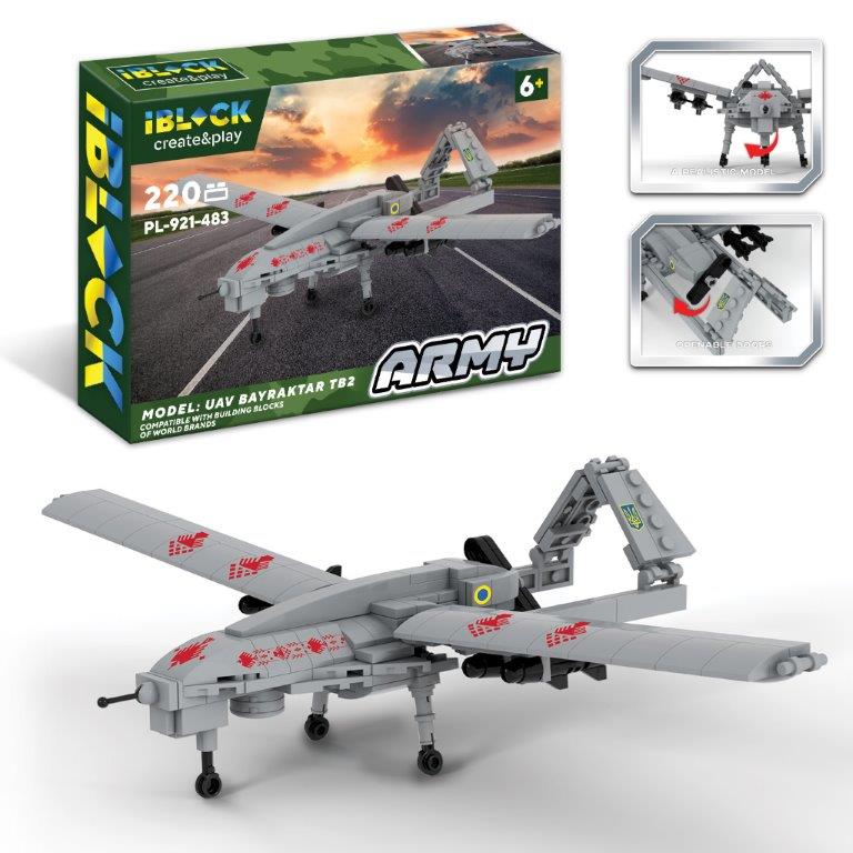 Конструктор IBLOCK арт. PL-921-483 (12шт) Армія, Bayraktar TB2, 220 дет., короб. 37, 5*6*25, 5см