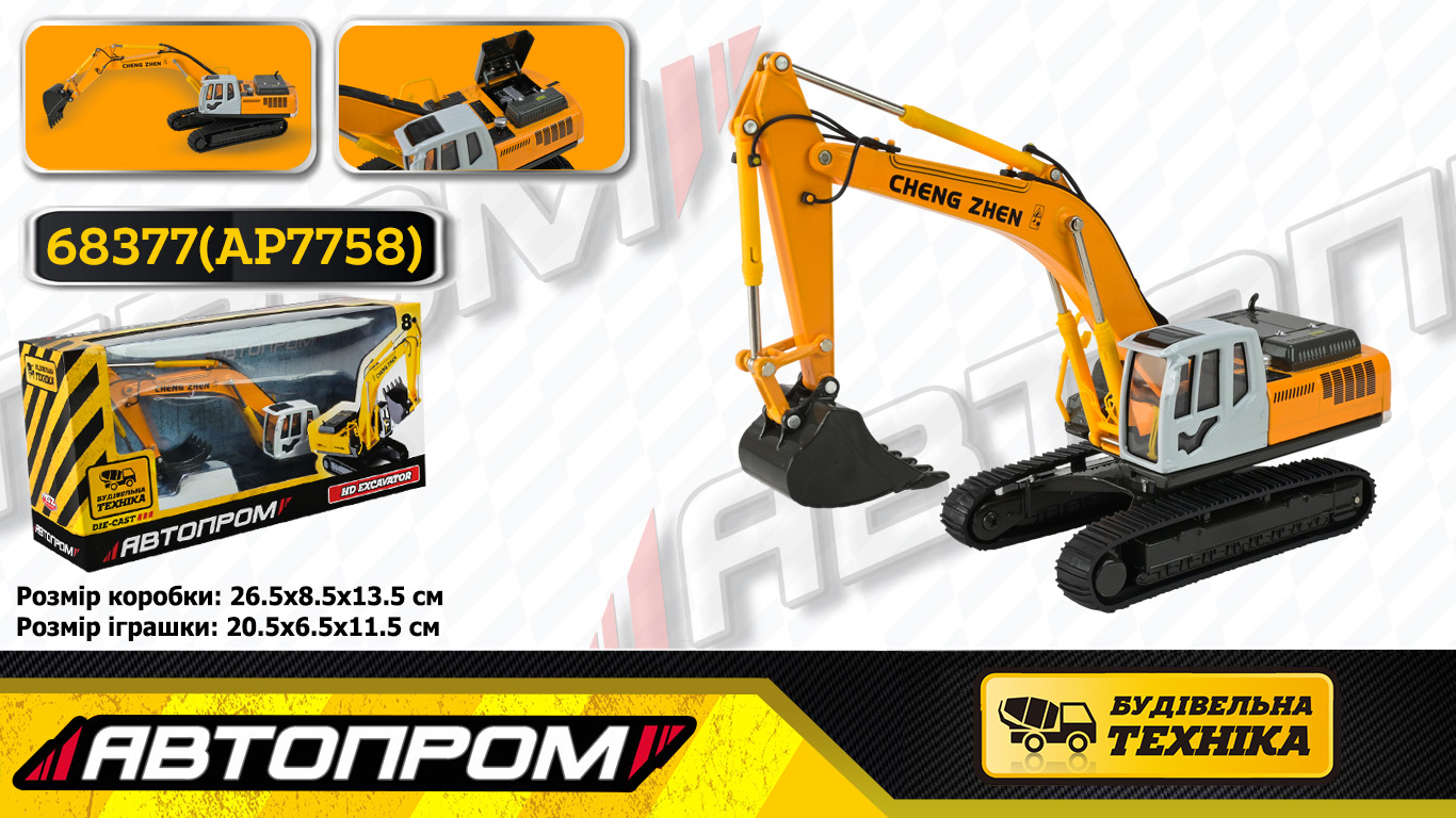 Будтехніка мет. АВТОПРОМ арт.68377(AP7758) (24шт/2), 1:50 Екскаватор, рухливі деталі, у короб. 26, 5*13, 5*8, 5см
