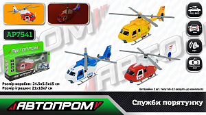 Вертолiт мет. АВТОПРОМ арт. AP7541 (96шт/2) 3 види, відкр.двері батар., світло, звук, у короб.24, 5*15*5, 5см