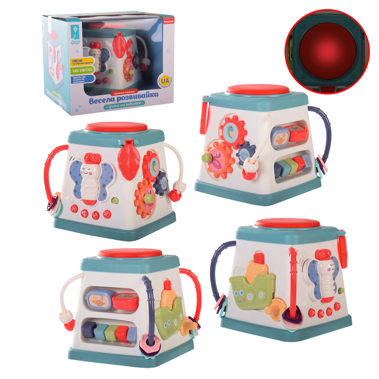 Бізікуб арт. PL-721-68 (12шт/2) батар, 7 в 1, озвучений українською мовою, активна кожна панель, пісні, форми, кольори, короб. 32, 5*22*25см