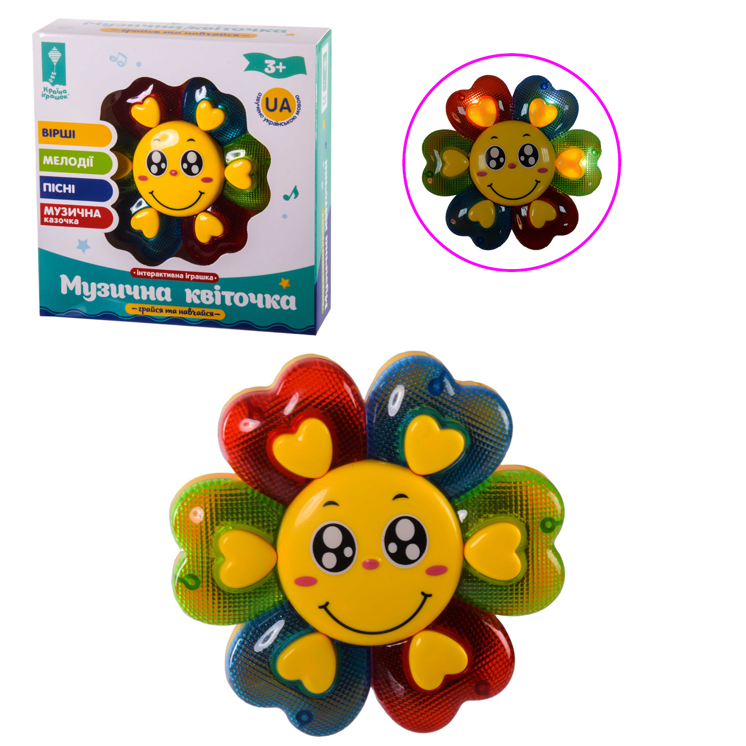 Іграшка муз.квітка PL-720-81 (120шт / 2) укр. пісня, вірші, батар., у кор. - 16 * 4.5 * 16.5 см, р-р іграшки - 11.5 * 11.5 * 3 см