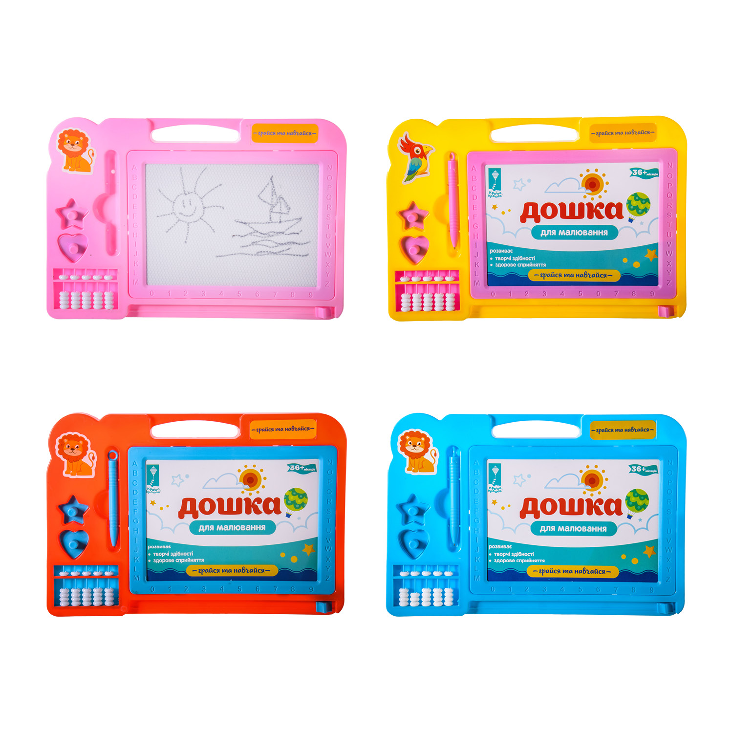 Дошка 2-х стор арт. PL-7002(36шт/2) укр.-рос. магніт. літери, крейда, маркер, пакет. 55*46, 5см, р-н іграш. – 55*40 см, р-н букв – 2*1.5*0.5см