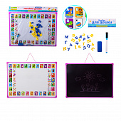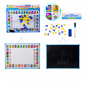 Дошка 2-х стор арт. PL-7003 (KI-7003) (60шт/2)укр.-рос.магніт.літери, крейда, маркер, пакет. 43.5*36 см, р-р іграшки – 43.5*30*1.2 см