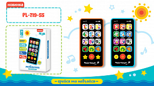 Іграшка муз розв.телефон "Мобілочка" арт. PL-719-55 (96шт/2) батар., цифри, кольор, твари, у короб 13*22, 5