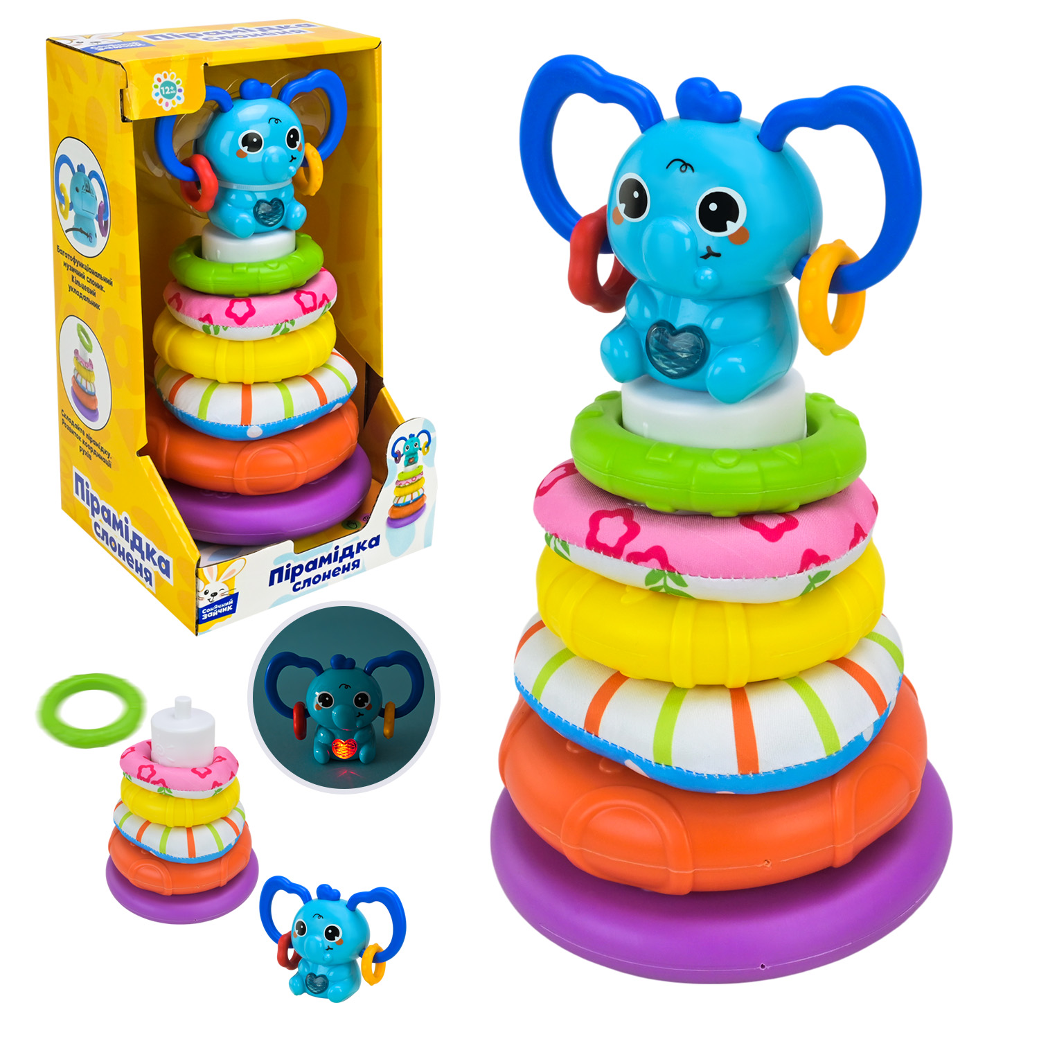 Пірамідка муз. арт. PL-724-85 (36шт/2) "Сонячний зайчик", батар.у комплекті, кільця тканеві та пласт., р-р 23*13*13, короб. 15, 5*14, 1*26, 8см