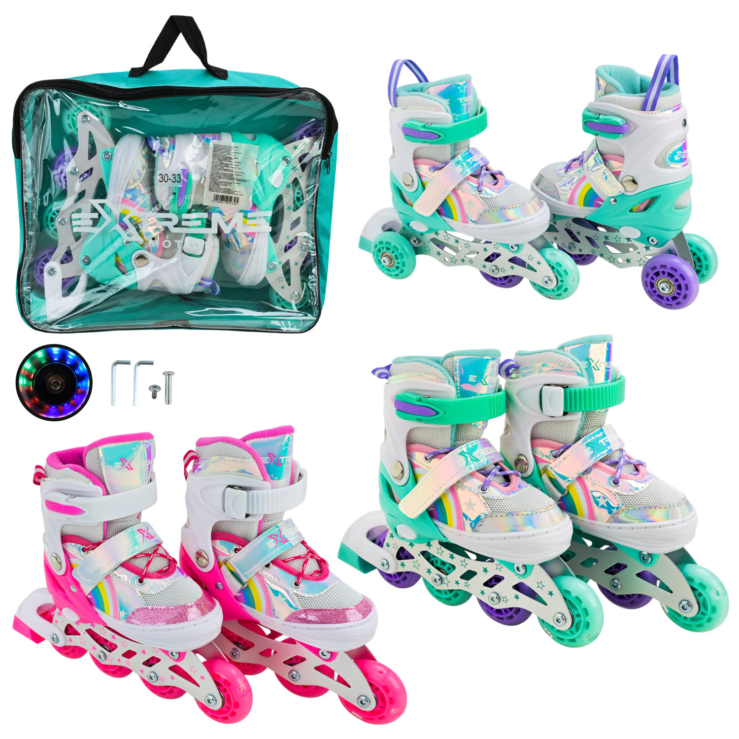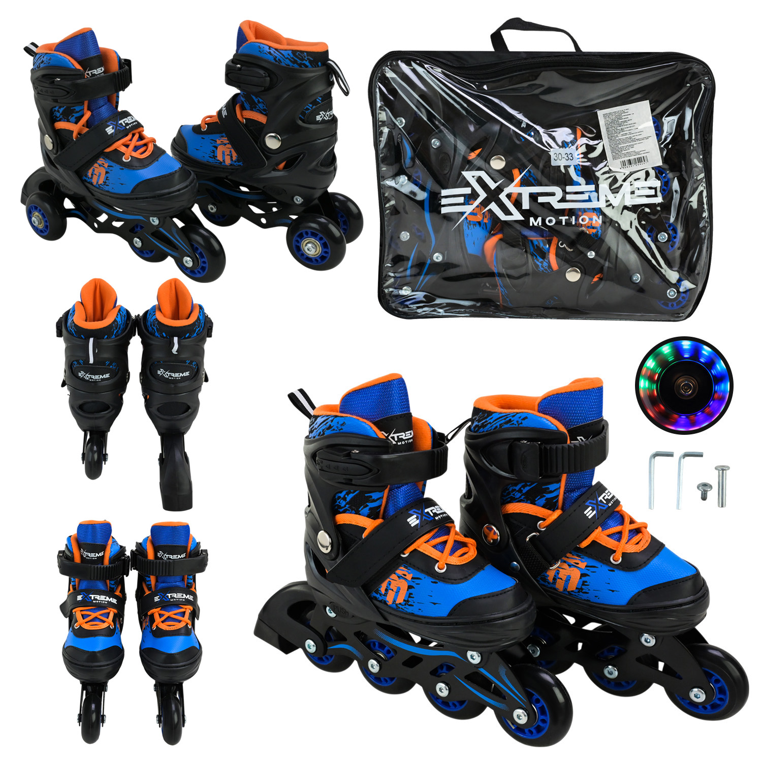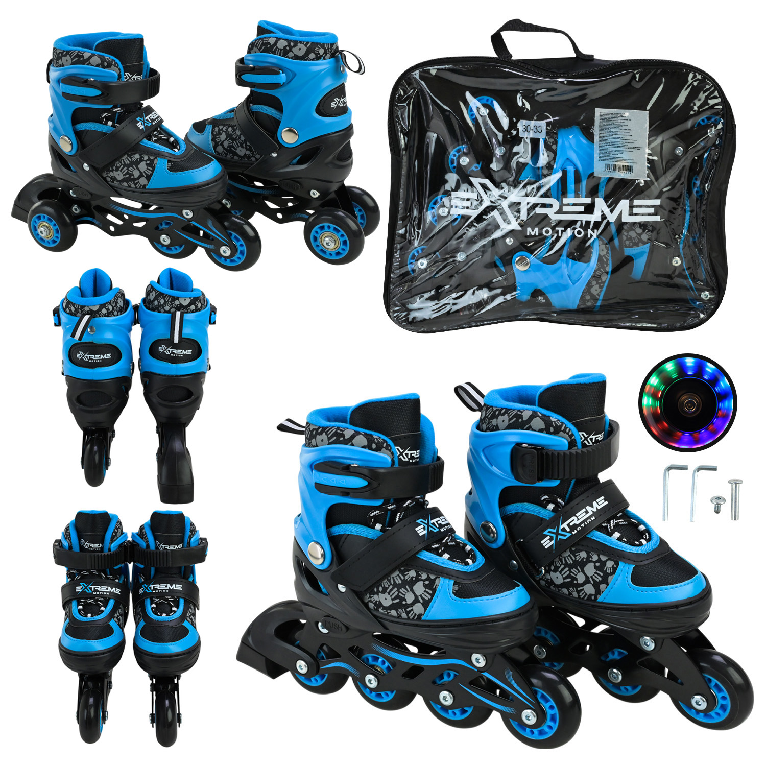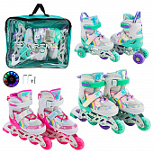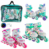 Роликові ковзани арт. RL25430 (6шт) розмір S (30-33) колеса PU 1 світло 2 кольори, у сумці 38*7*31 см