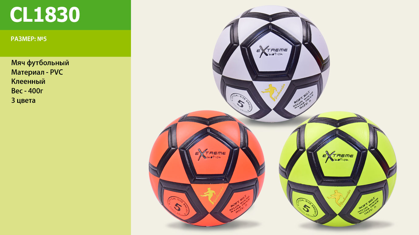 М'яч футбольний арт. FB1386 (60шт) Extreme motion №5 PVC 340 грамiв, сiтка+голка, 2 кольори