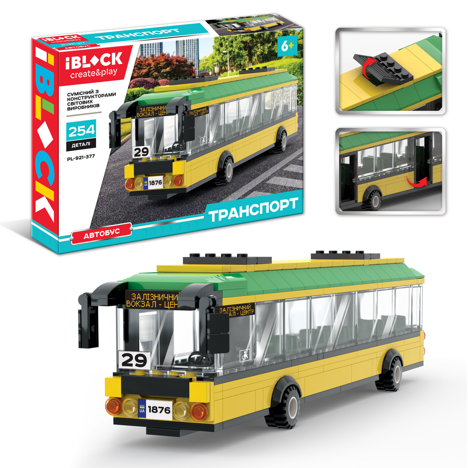 Конструктор IBLOCK арт. PL-921-377 (12штI ТРАНСПОРТ Автобус 254 дет., інструкціія та наліпки у комплекті короб. 37, 5*25, 5*6см