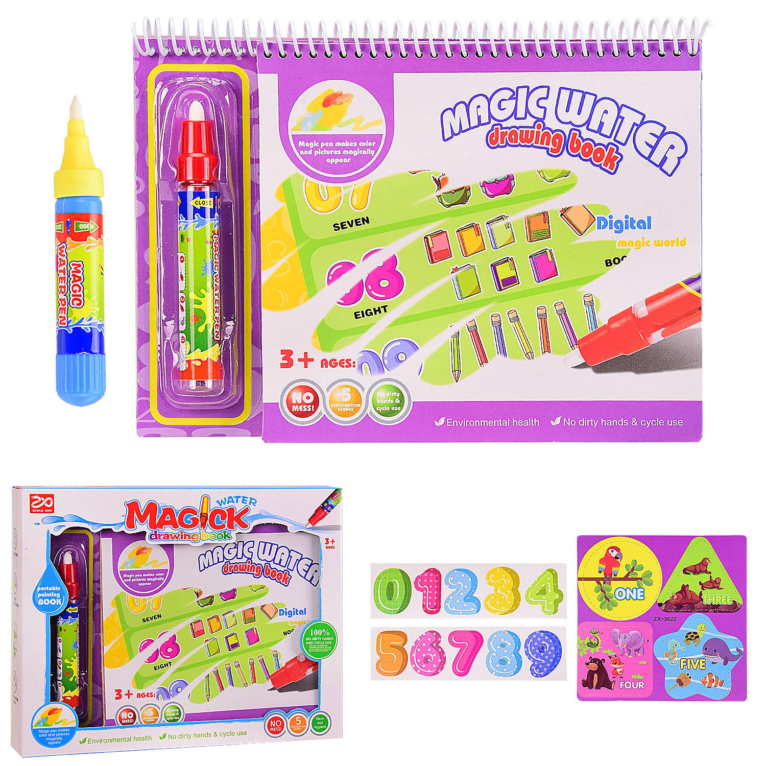Розмальовка книжка арт. 2001A-1/7A-1/10A-1/11A-1/14A-1 (96шт) 5 видів мікс, розмальовка водою, маркер для води, пакет 20*24см