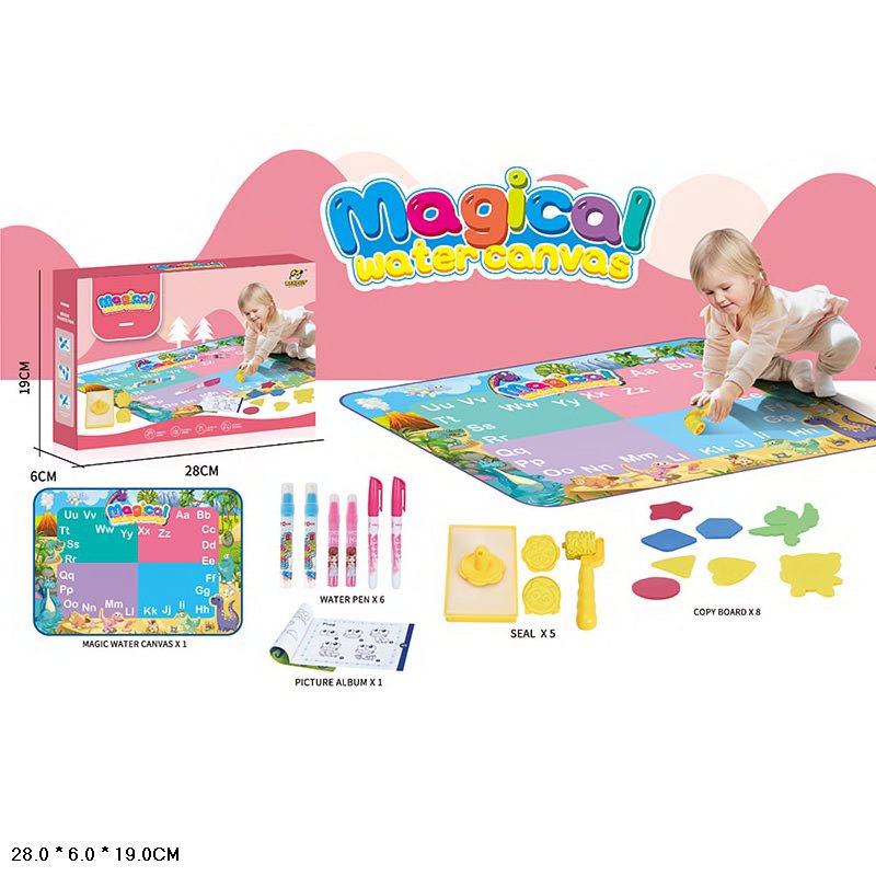 Килимок для малювання арт. BY2021-83 (60шт) малювання водою, зникає через 5 хв., комплекті трафарети, 6 водяних маркери, інструкція з малювання, короб. 28*6*19см