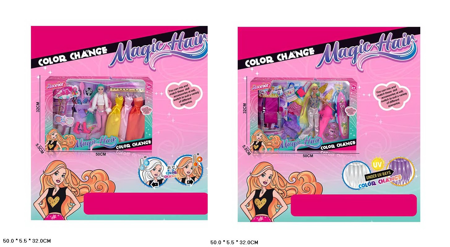 Лялька арт. JJ9913-1W/JJ9913-2G (30шт/2) мікс 2 види, змінюе колір волосся під впливом тепла чи холоду, одяг, аксес короб. 32, 5*6, 5*50см