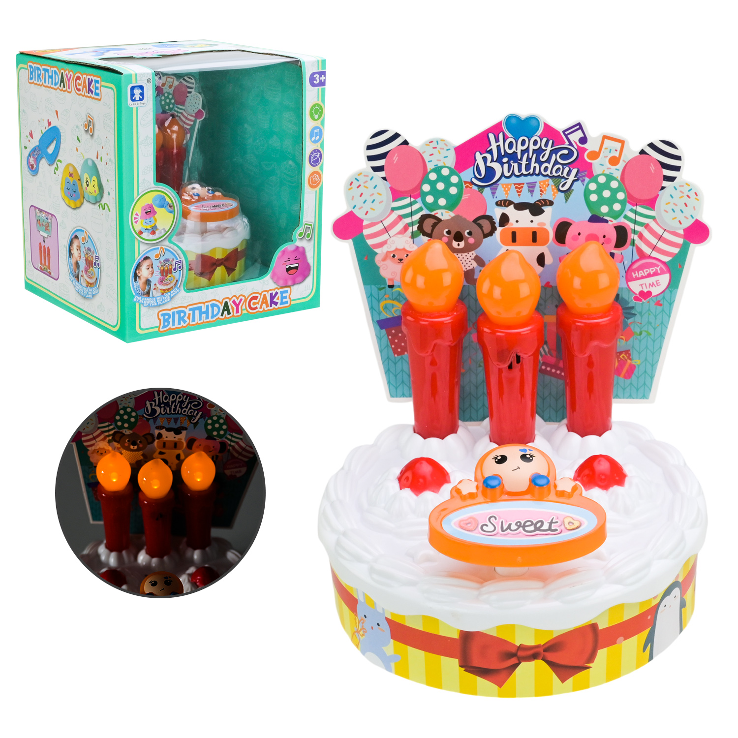 Продукти набір арт. LKE3L (40шт/2) торт, світло, музика, при дмухані свчки гаснуть змінюється музика короб. 19*17*17см