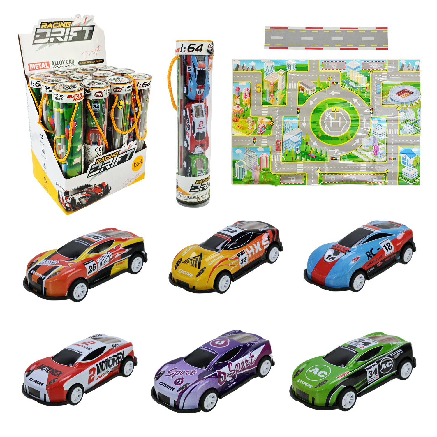 Машина мет. арт. E1303A (288шт) в наборі ігрове поле з дорожнім рухом, 24уп по12шт у дисплей боксі 18*13, 5*21см