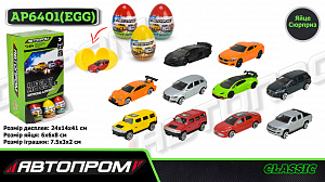 Машина мет. арт. AP6401(EGG) (72шт) "АВТОПРОМ"1:64, мікс моделей, 36 штук у дисплей боксі 24*14*41см, яйце 6*8см