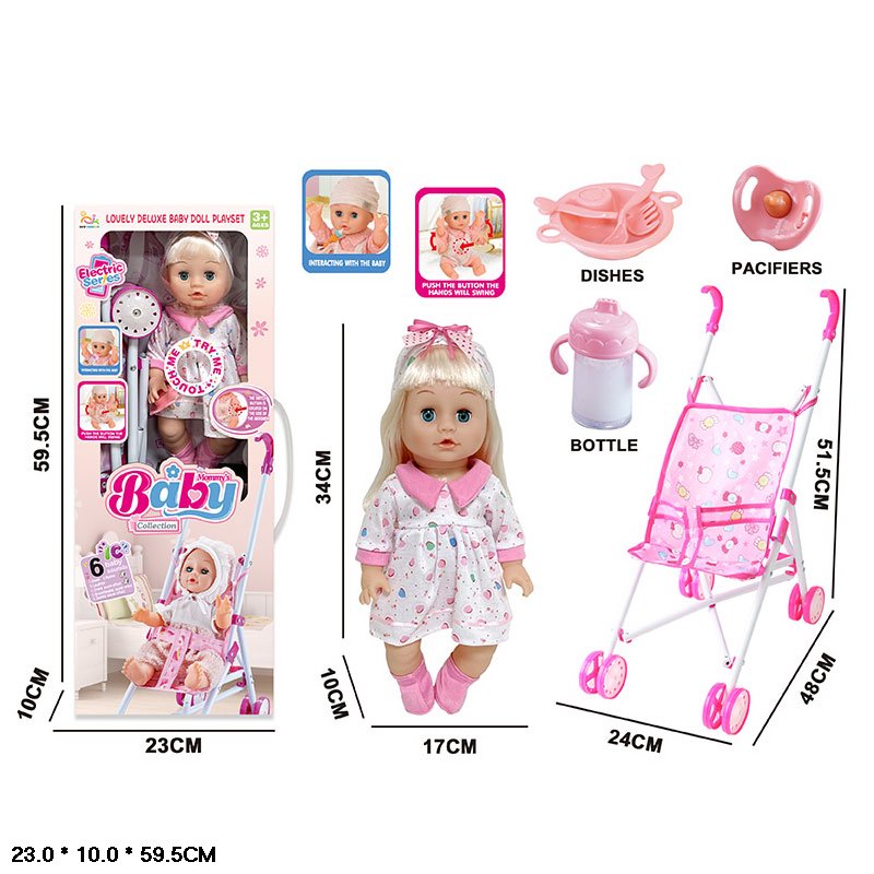 Іграшковий набір арт. 151A (18шт) батар. входять у комплект, лялька, візочок, аксес, повторює слова, мама, сміх, рух короб. 23*10*60