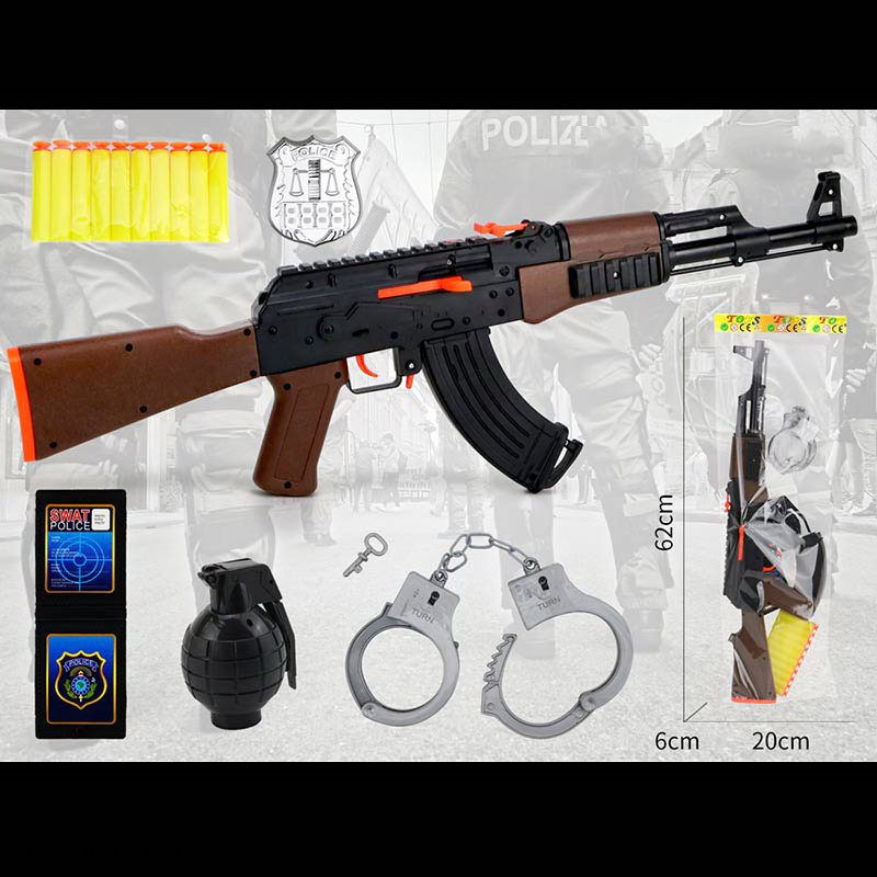 Поліцейський набір арт. 331-1 (120шт/2) автомат, 3 снаряди на присосці, ніж, наручники, планш. 23*3, 5*64см