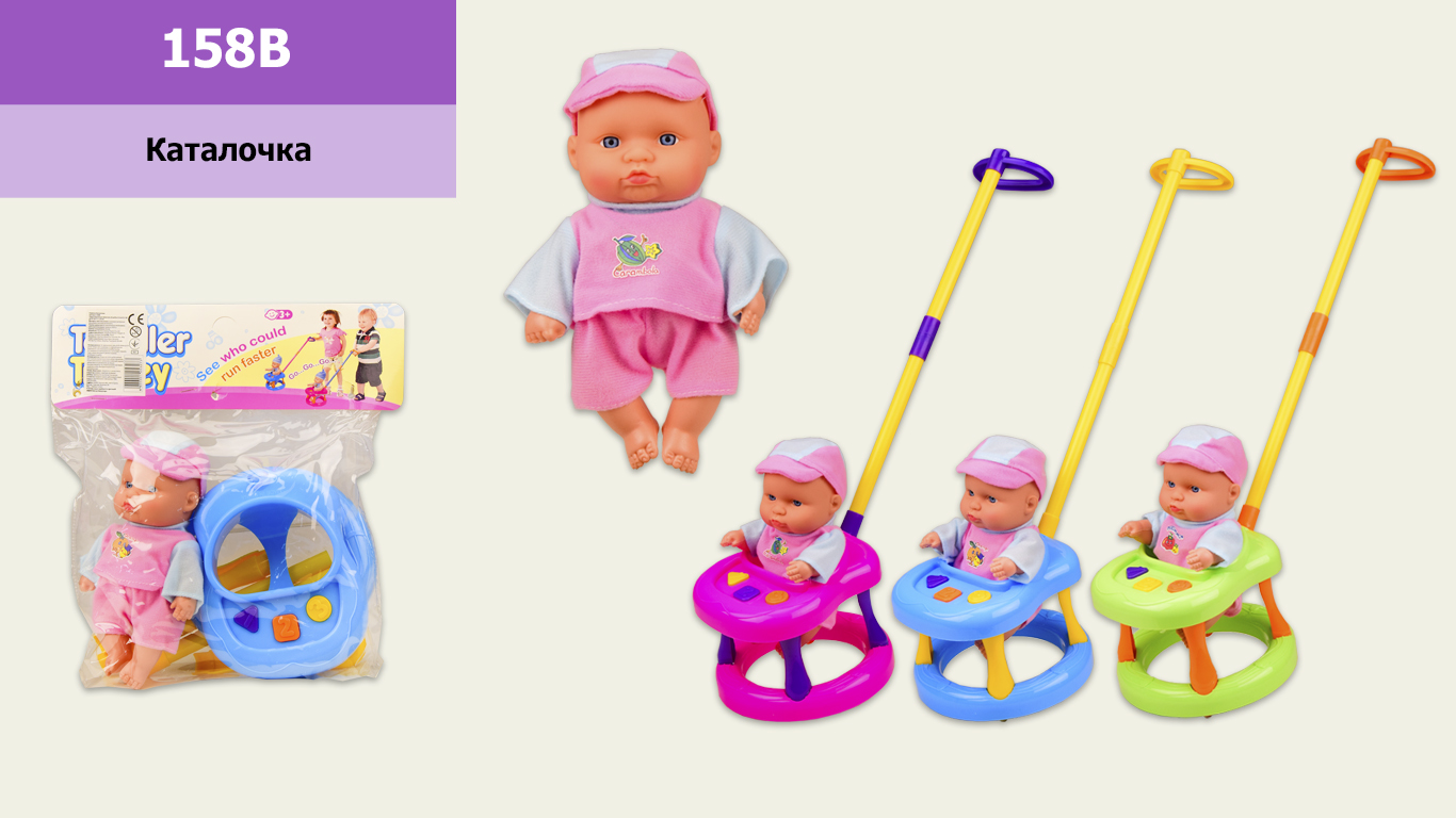 Каталочка арт. 158B (96шт/2) пупс, 3 кольор., на палочці, пакет 28*30см