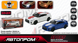 Машина мет. АВТОПРОМ арт. 68469 (48шт/2) 1:32 Nissan GT-R (R35), батар, світло, звук, відкр..двері, короб. 18*9*9см