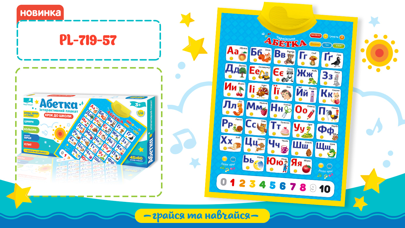 Плакат навч. "Абетка" арт. PL-719-57 (24шт/2) укр. плакат, батар., короб. 49*23*4 см