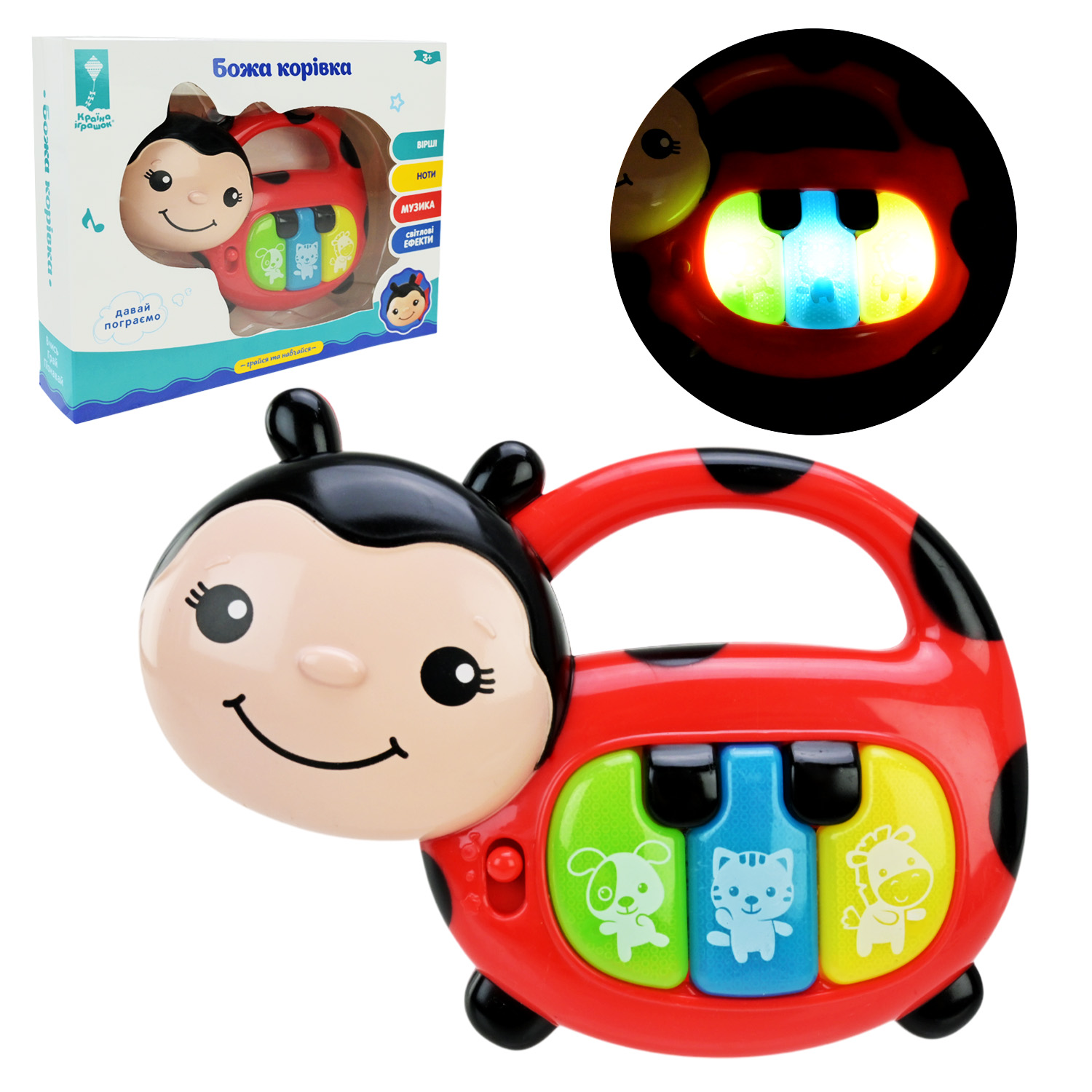 Піаніно муз. арт.PL-724-26 (120шт/2) Божа корівка, "Грайся та навчайся", батар, укр.мова, звуки, пісні, р-р 15*11см, короб.19, 3*4, 2*15 см