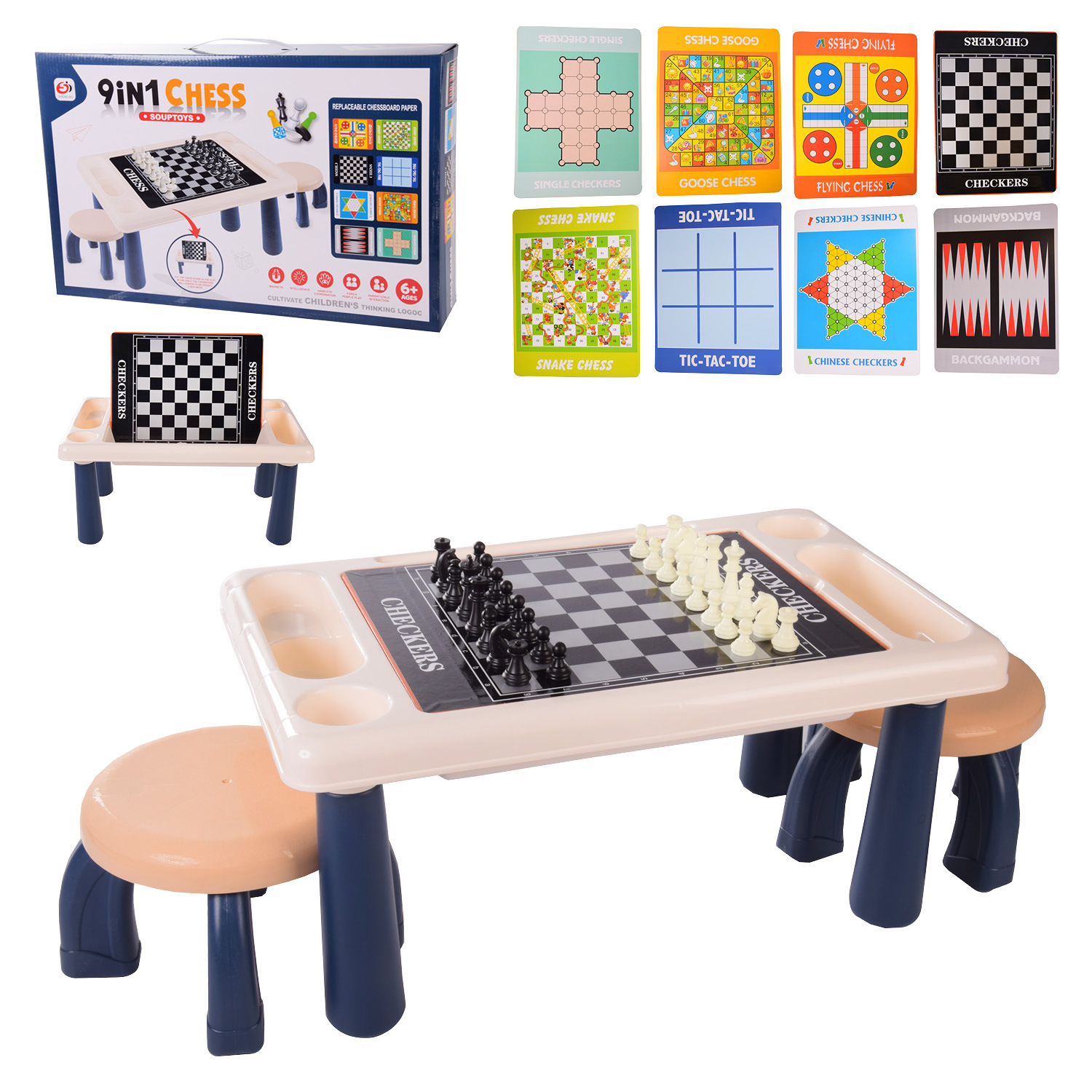 Шахи арт. S5511 (18шт/2) 9в1, стіл+2 стільця в наборі, короб. 49, 5*31, 3*10см