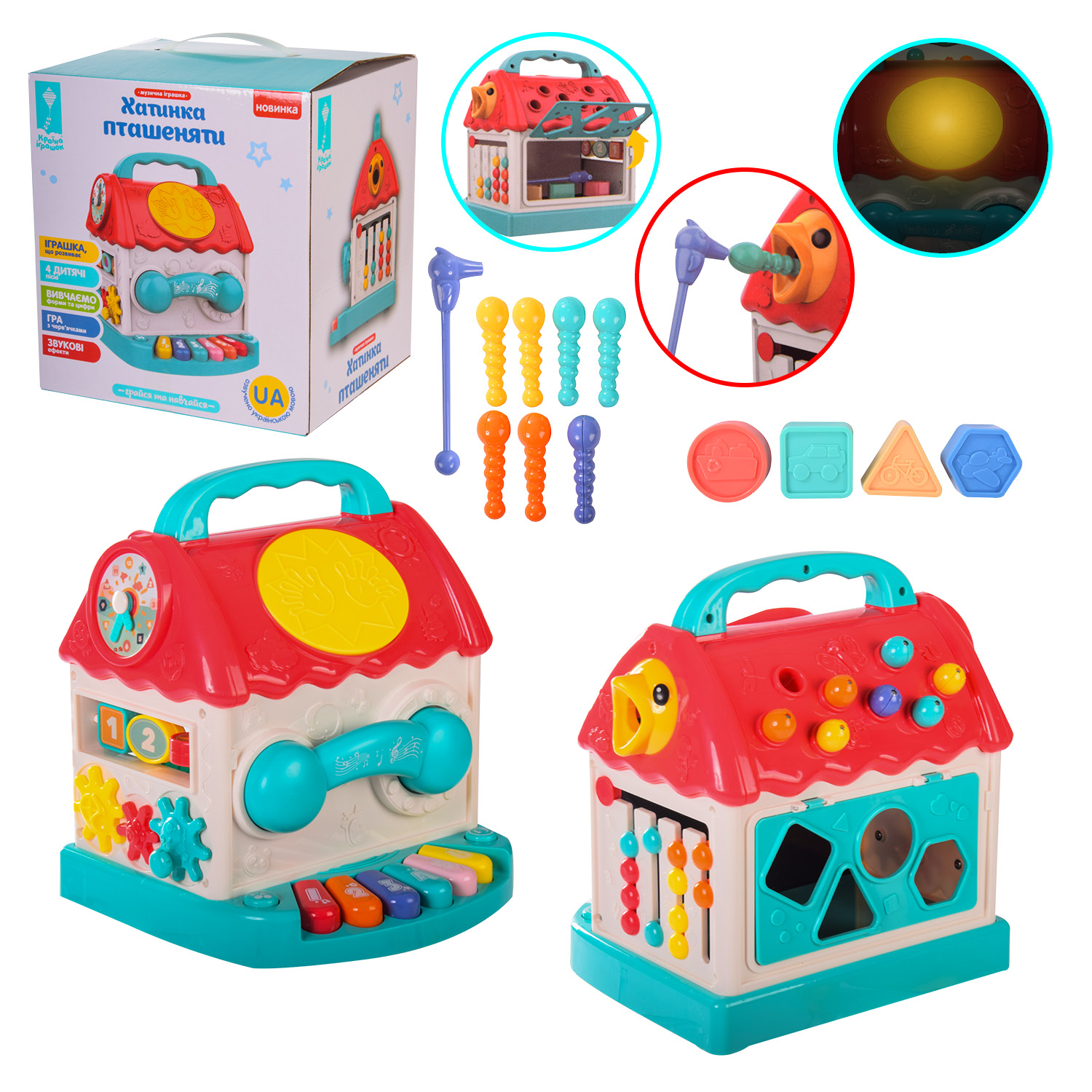 Хатинка пташеня муз. розв. арт. PL-721-59 (18шт) UA батар., озвучена укр. мовою, лабіринт, рахунок, орган, моторика, р-н іграш. 20.5*19.5*24 см, короб.23, 5*20, 7*25, 2см
