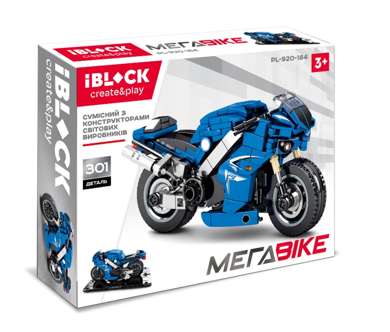 Іграшка конструктор IBLOCK арт. PL-920-184, мотоцикл, 301 дет., у коробці 28*21*5,5 см