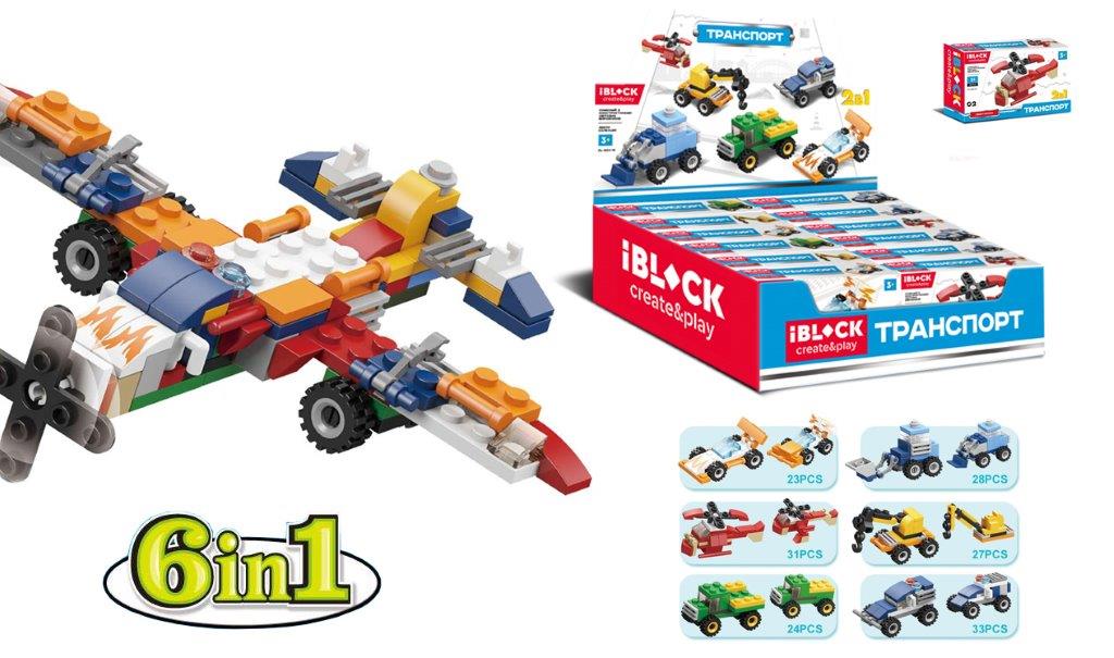 Іграшка конструктор IBLOCK арт. PL-920-19, Транспорт, 23-33 дет., 12 шт у дисплеї 7,5*26,5*20 см
