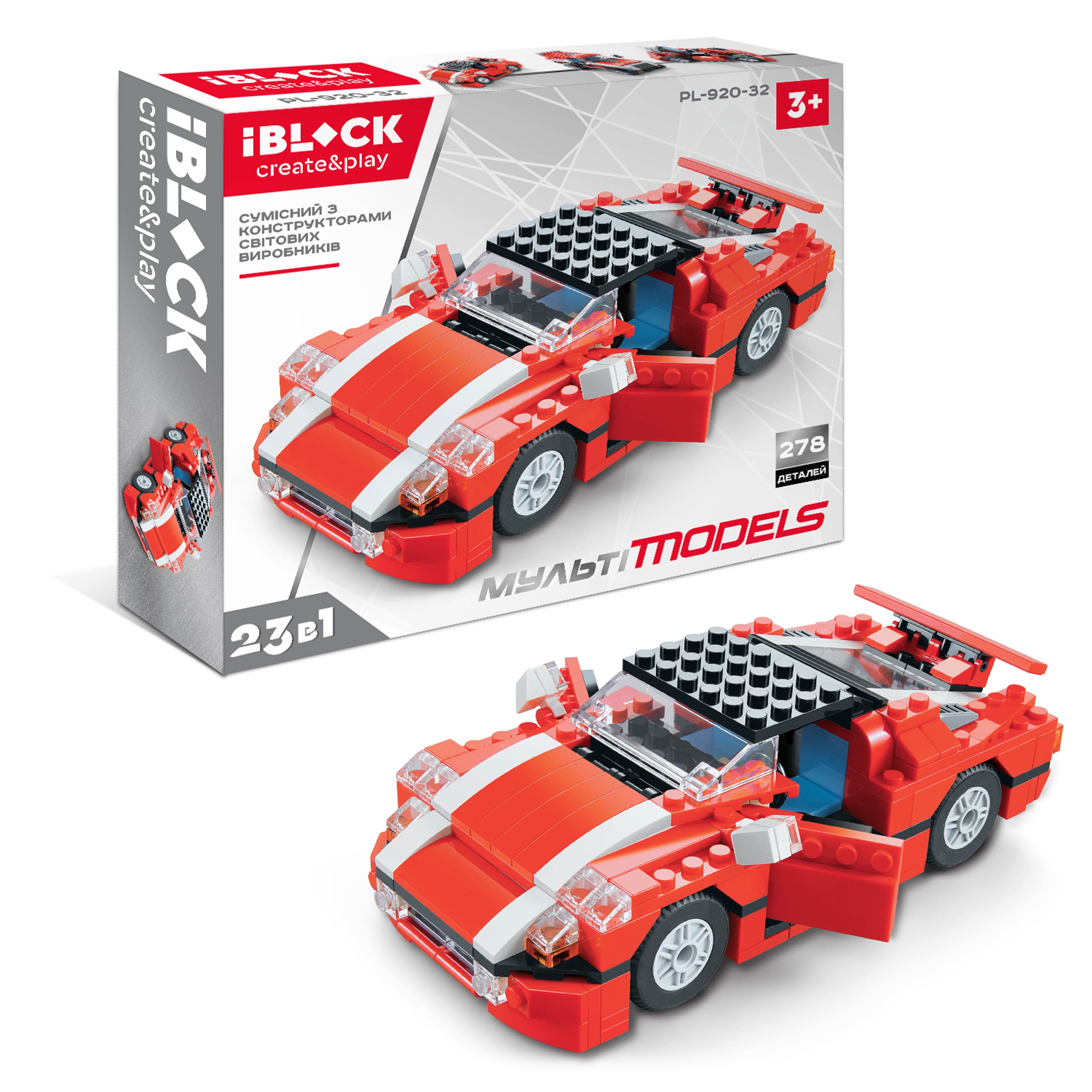 Іграшка конструктор IBLOCK арт. PL-920-32, машинка, 23 в 1, 278 дет., у коробці 31*26*6 см