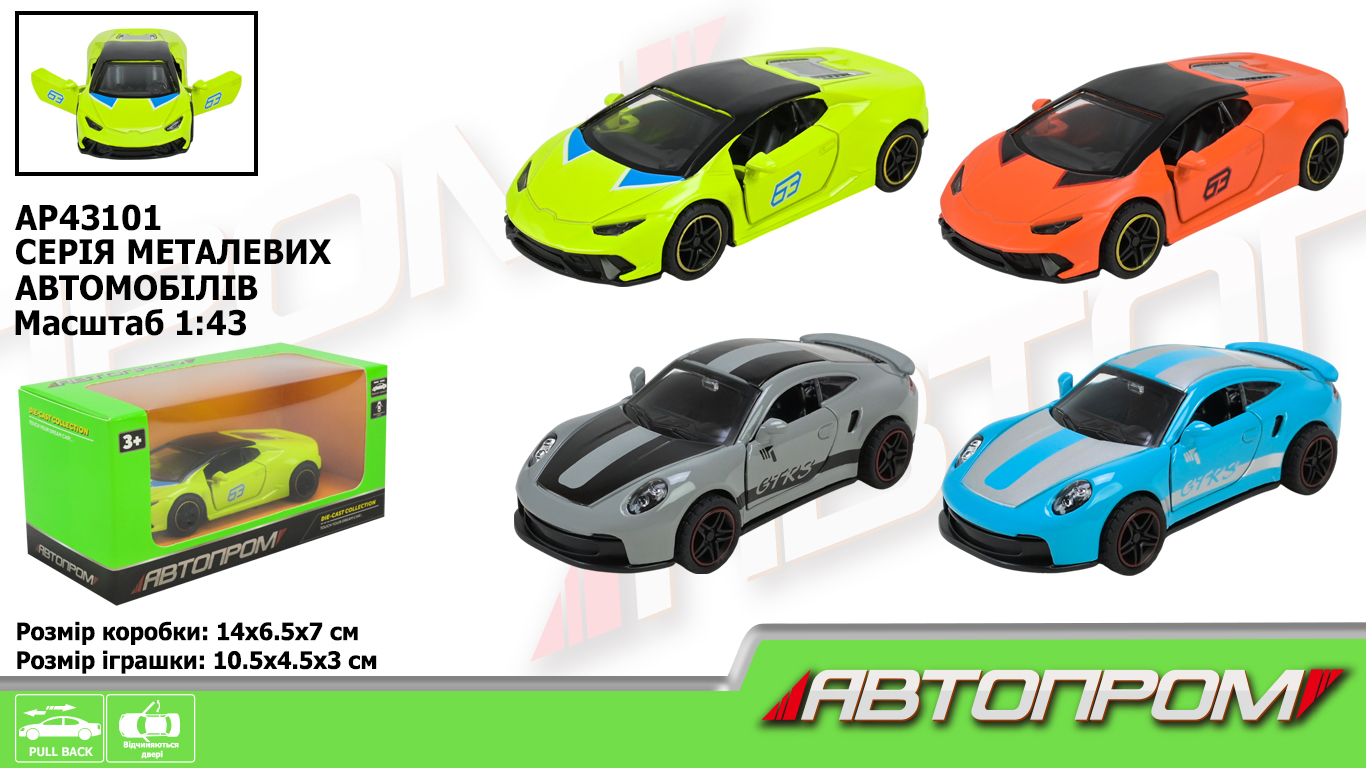 Іграшка машина мет. АВТОПРОМ арт. AP43101 1:43, 4 кольори відкр.двері, у короб.14*7*6,5см