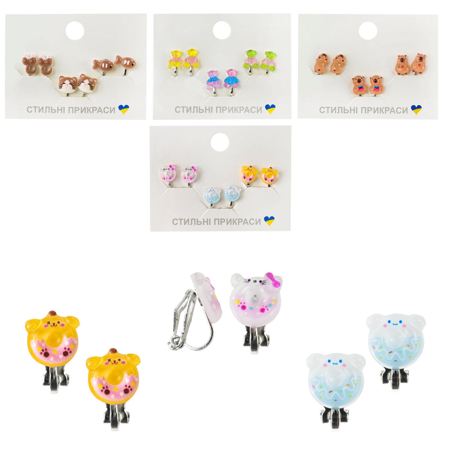 Набір дитячої біжутерії арт B4317, сережки на кліпсі на планшетці, мікс видів