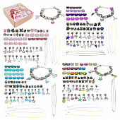 Іграшковий набір прикрас арт. B4350 типу пандора, 3 браслети, 3 підвса на шию, 60 шарміу у короб. 15.2*5*15 см