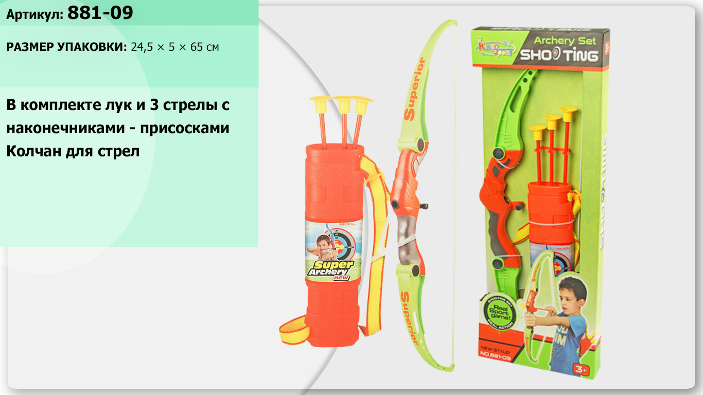 Іграшковий набір лук та стріли арт. 881-09, у короб. 65.5*24.5*5 см.
