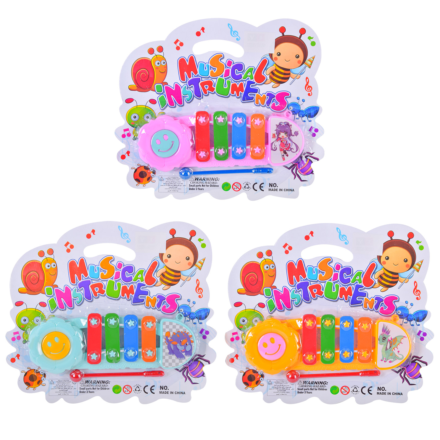 Іграшка ксилофон музичний арт. Y9093,3 кольори мікс, на планшетці 20,5*19,5*2см.