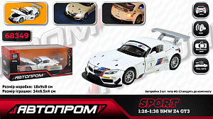 Іграшка машина мет. АВТОПРОМ арт. 68282A(G) 1:24 "BMW M4 GT3" grey color,батар.,світло,звук,відкр.двері,капот,короб. 24,5*12*10см