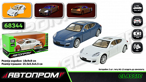Іграшка машина мет. АВТОПРОМ арт. 68344 1:32 Porsche Panamera S ,батар, світло,звук,відкр.двері,у коробці 18*9*8 см