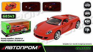 Іграшка машина мет. АВТОПРОМ арт. 68343 2 кольори, 1:32 Porsche Carrera GT ,батар, світло,звук,відкр.двері,у коробці 18*9*8 см