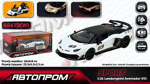 Іграшка машина мет. АВТОПРОМ арт. 68473 1:32 Lamborghini Aventador SVJ,батар, світло,звук,відкр.двері,у коробці 18*9*8 см