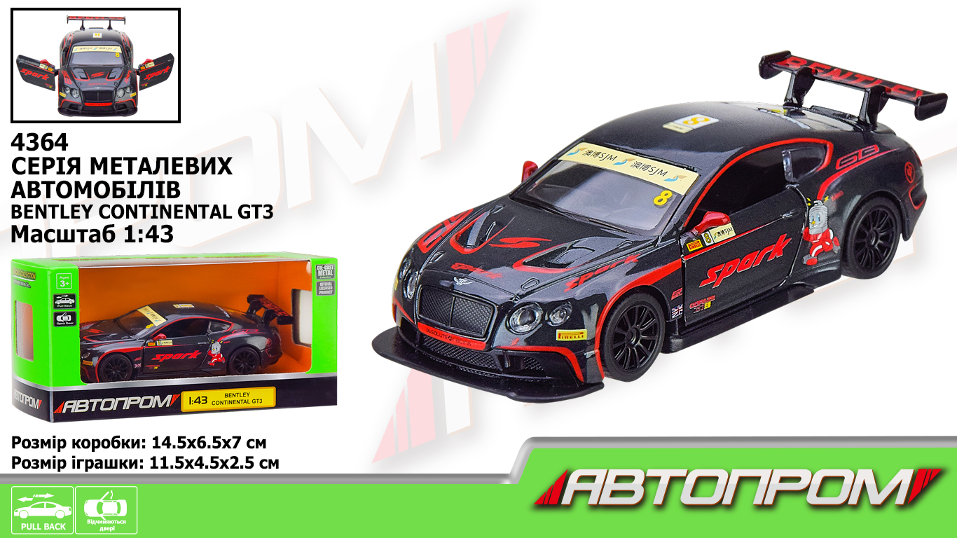 Іграшка машина метал арт. 4364 (4345) "АВТОПРОМ",1:43 Bentley Continental GT3, короб,14,5*6,5*7 см.