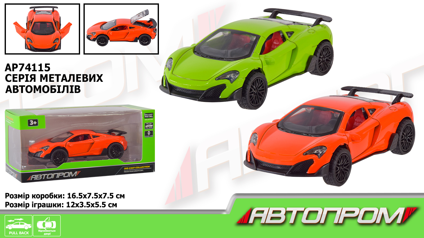 Іграшка машина мет. АВТОПРОМ арт. AP74115 1:32,2 кольора,відкр.двері,багажник,у короб.16,5*7,5*7,5см