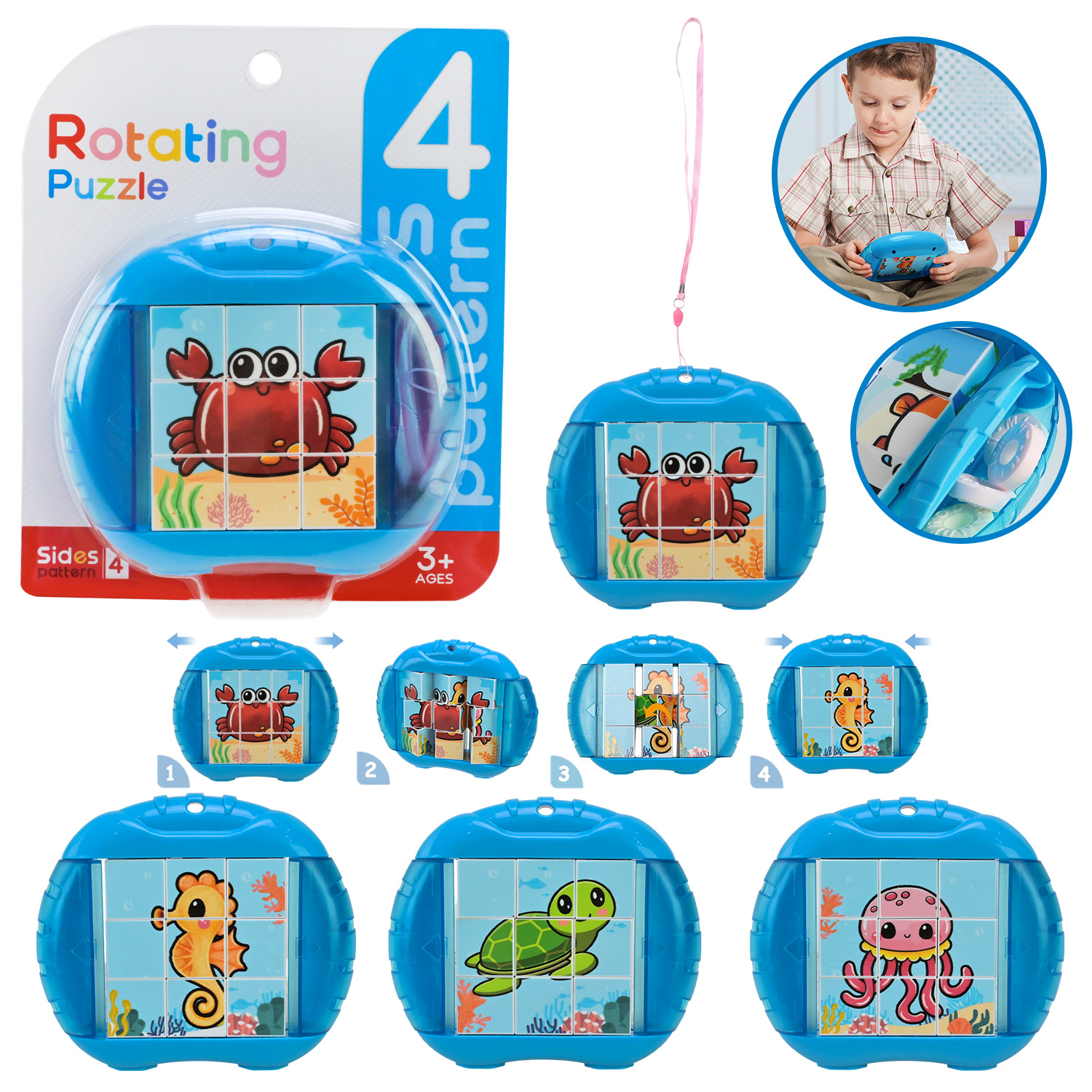 Іграшка обертові кубики арт. 5588-1, р-р 12*2,5*10см,потрібно скласти 4 картинки, інструкція, матузок, планшет 15*2,5*15см